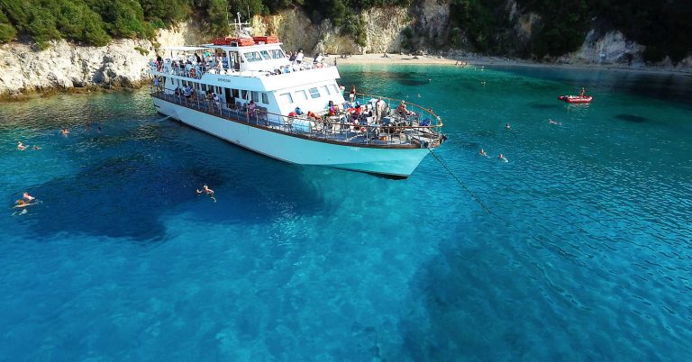 The Ionian Sea is renowned for its crystal-clear waters and charming coastal towns, and this cruise showcases some of its finest gems. Departing from Corfu Port, the journey sails south to the Sivota Islands, a cluster of small islands known for their lush greenery and pristine beaches. The highlight is the Blue Lagoon, a natural marvel with vibrant turquoise waters that rival Caribbean paradises. Here, you’ll have the opportunity to swim or snorkel in the crystal-clear coves, surrounded by dramatic cliffs and serene beauty.