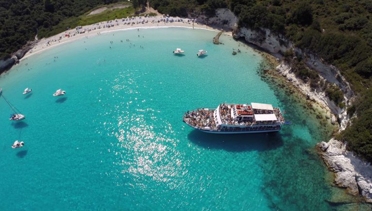 Stop at Antipaxos for swimming at Mesovrika or Voutoumi Beach (50-70 minutes).